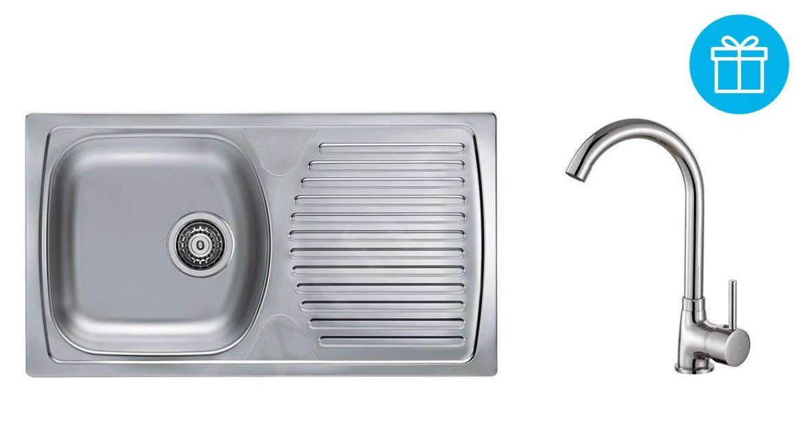 Set keukenspoelbak Basic 170, kraan Karina en cadeau