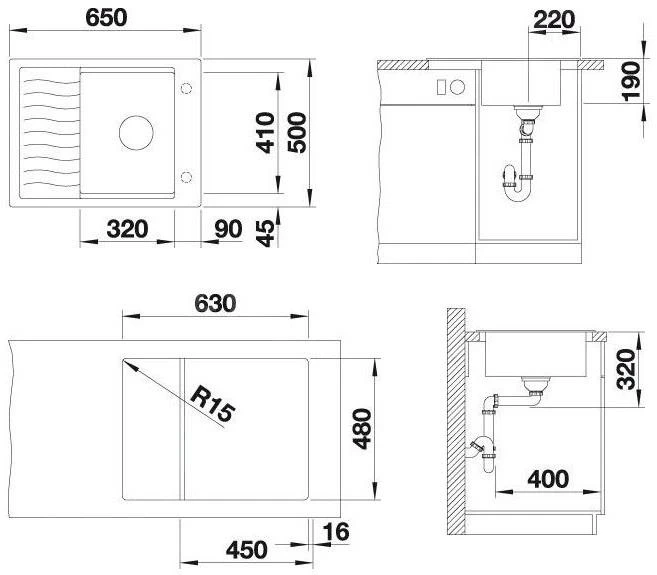 Elon 45 S spoelbak, dubbelzijdige uitvoering