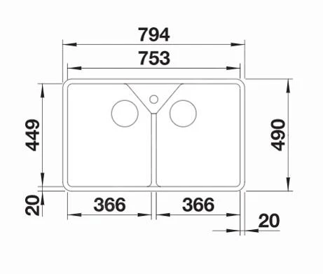 - afmetingen spoelbakken 2x 366 x 449 mm