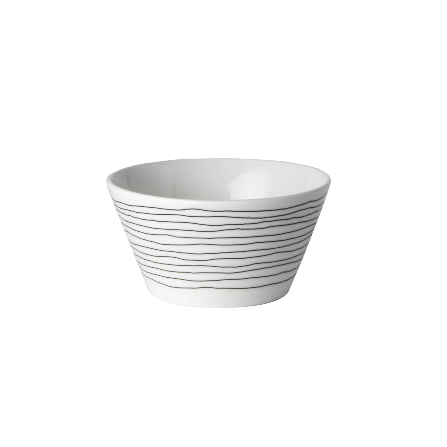 De Dutch Rose Amsterdam Loft kom 10 cm wit streep zwart is een porseleinen kom met een inhoud van 22 cl. Perfect voor kleine hapjes of een dipsausje.