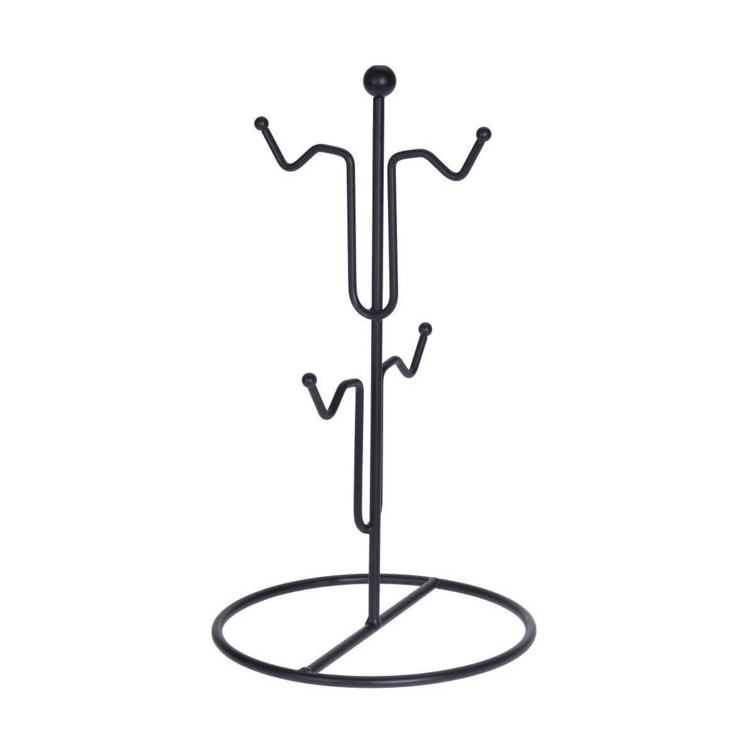 Deze leuke Excellent Houseware bekers kan je ophangen aan een metalen rekje. Zet ze prominent in je keuken als accessoire! Elke beker is uniek en heeft een print in de kleuren zwart en wit. Afmeting rekje: 28 cm x Ø16 cm. Afmeting beker: 10 cm x Ø9 cm.