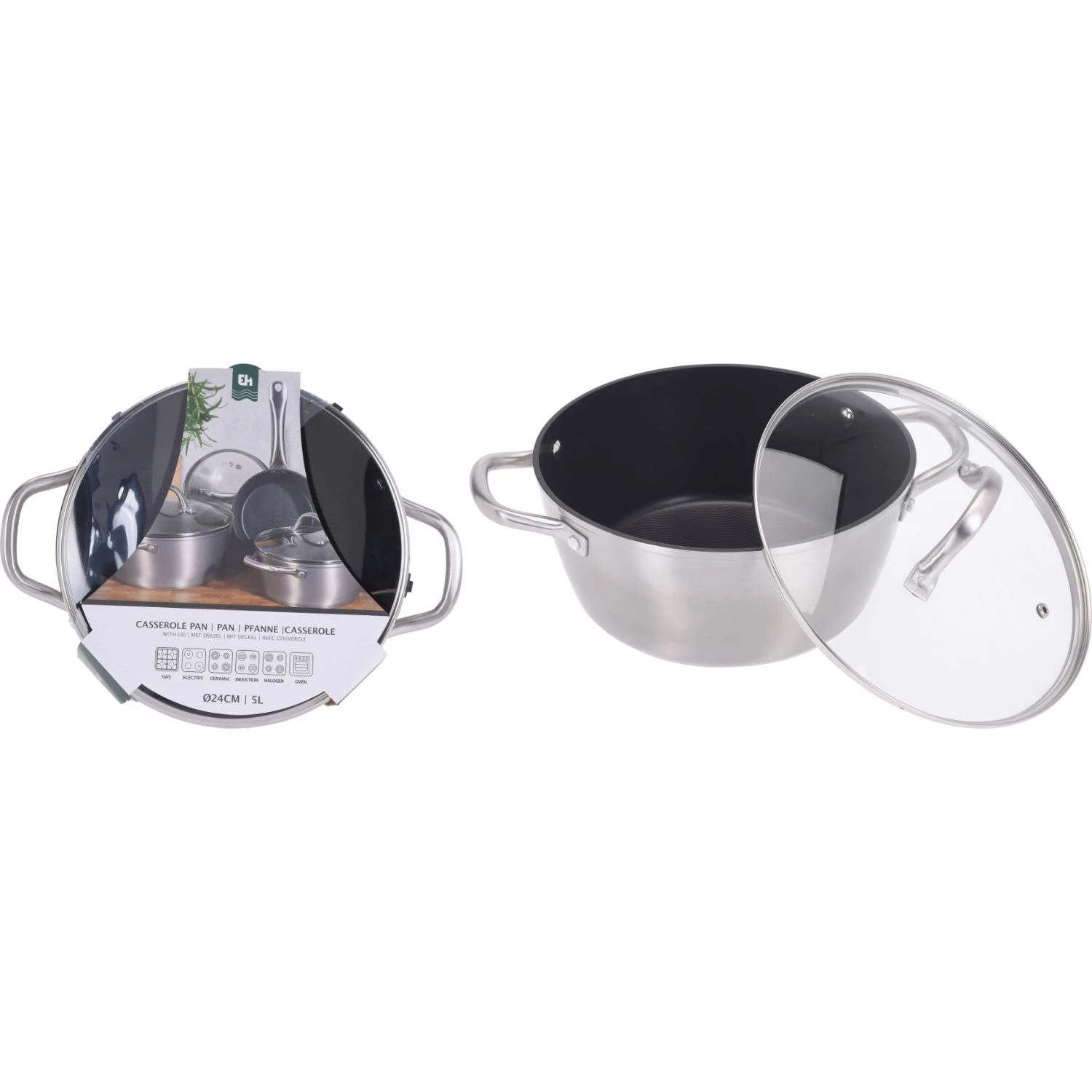 In deze kookpan van Excellent Houseware bereid jij de lekkerste groente, soep en pasta. De pan is gemaakt van gesmeden aluminium en heeft een glazen deksel. Daarnaast heeft de pan een goede anti-aanbaklaag en koudgrepen, waardoor de pan prettig is in gebruik! Met een diameter van 24cm en een inhoud van 5 liter kun jij lekker aan het kokkerellen!