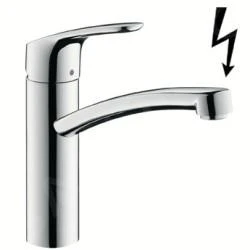Deze zogenaamde “lagedruk” kraan is bestemd voor drukloze boilers, die niet zijn aangesloten op centrale levering van warm water. De kraan is niet geschikt voor doorstroomverwarmers. Deze keukenkraan met een hoogte van 160 mm (afstand tussen de uitloop en de onderste rand) en een draaihoek van 150° biedt zowel in verticale als horizontale richting een royaal werkbereik. Het slanke lineaire design van de Focus kraan is tijdloos, goed te combineren en past perfect in elke keuken. De elegante afgeronde kraan met één straal (normaal) biedt praktisch gebruikscomfort bij de dagelijkse werkzaamheden in de keuken en scoort extra punten door de geavanceerde technologie.