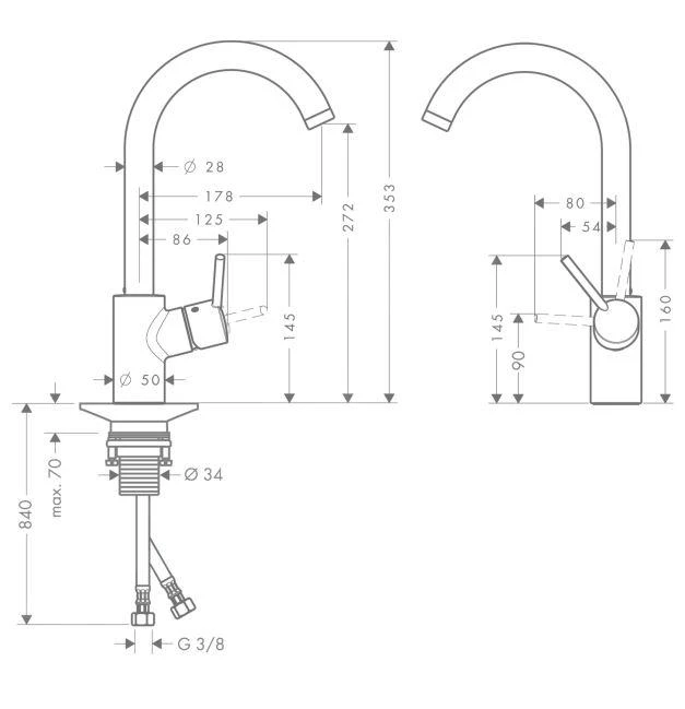 De Hansgrohe Talis S² 1-greeps keukenkraan geeft uw keuken met het verfijnde design en de functionele eenvoud een vleugje luxe. De karakteristieke pingreep zorgt voor een eenvoudige en intuïtieve bediening.