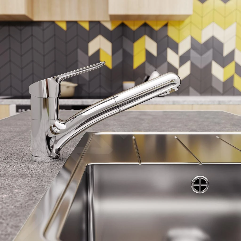 - BlueStart technologie – bespaart energie en water; als de hendel in de middenpositie staat, stroomt er koud water uit de kraan