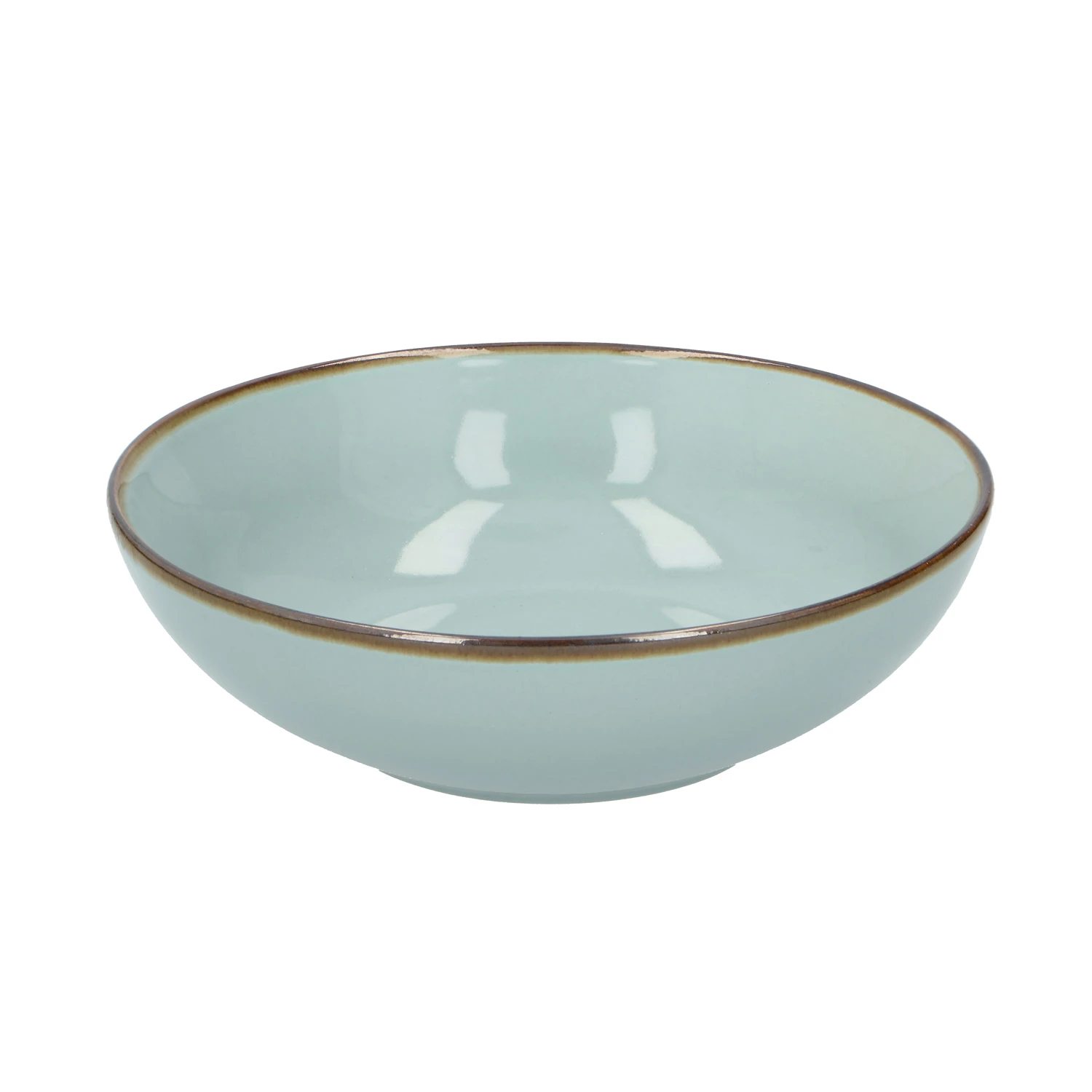 Deze mintblauwe ronde kom is een mooie aanvulling op je servies. De kom heeft een afmeting van 18 cm en is ideaal om soep, joghurt of snacks in te serveren. De kom is vaatwasserbestendig. Gemaakt van keramiek.