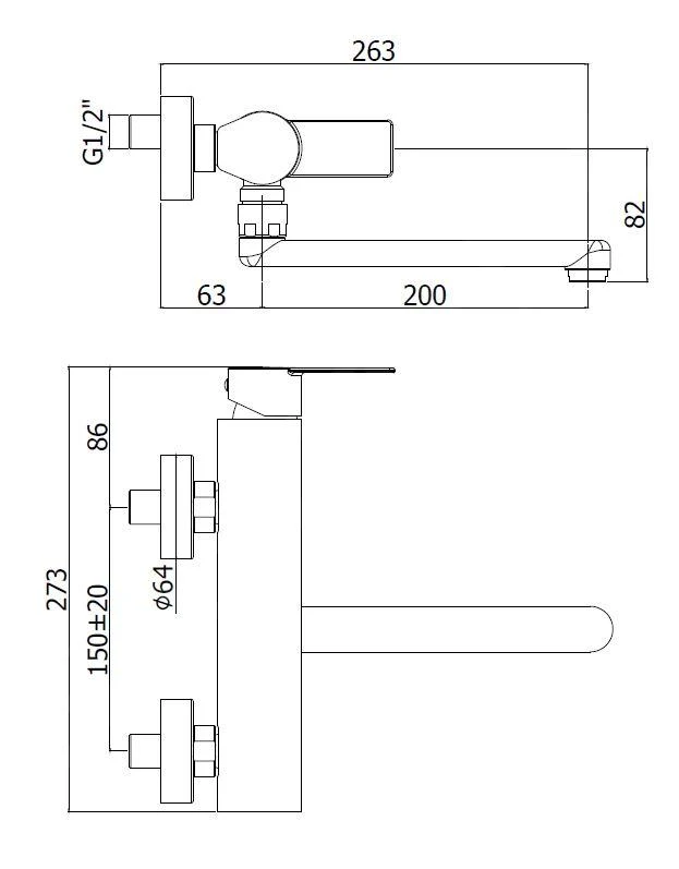 - lengte uitloop gemeten vanaf de muur 263 mm